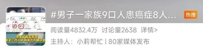 但如果一级亲属(父母、亲兄弟姐妹、子女)中2~3人患同一种癌症,则可高度怀疑有家族性患癌倾向,但必须通过基因检测予以排查。