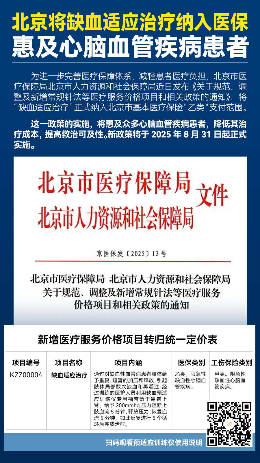 相信这一政策实施后,将会有更多城市响应,将缺血预适应训练纳入医保,惠及更多心脑血管疾病患者。