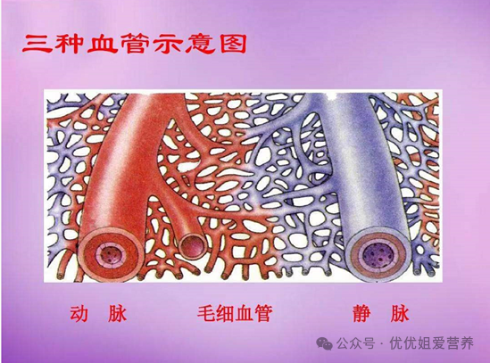 毛细血管:最细的单层细胞网,直接和细胞交换氧气、养分和废物,是“终极配送站”。