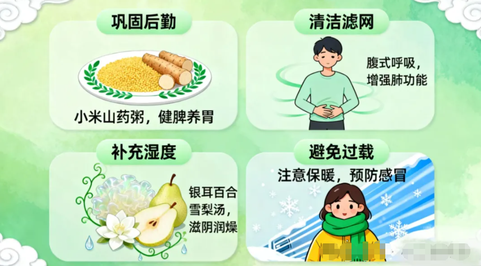 1. 巩固“后勤部”(脾土):好好吃饭,多吃小米、山药。后勤有保障,肺气才充足。