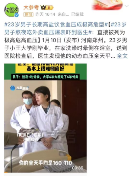 类似这样的新闻也会经常看到,年纪轻轻,但是因为经常在外面高盐饮食,得了高血压。而高血压是心脑血管疾病的重要危险因素,长期未控制的高血压会损伤血管内皮、加速动脉硬化,导致心脏负担加重、脑血管结构异常,最终引发心梗死、脑卒中、心力衰竭等严重疾病。