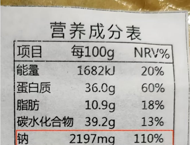 例如,某泡面调料包含钠2000毫克/100克,已达到NRV的100%,属于典型高钠食品。