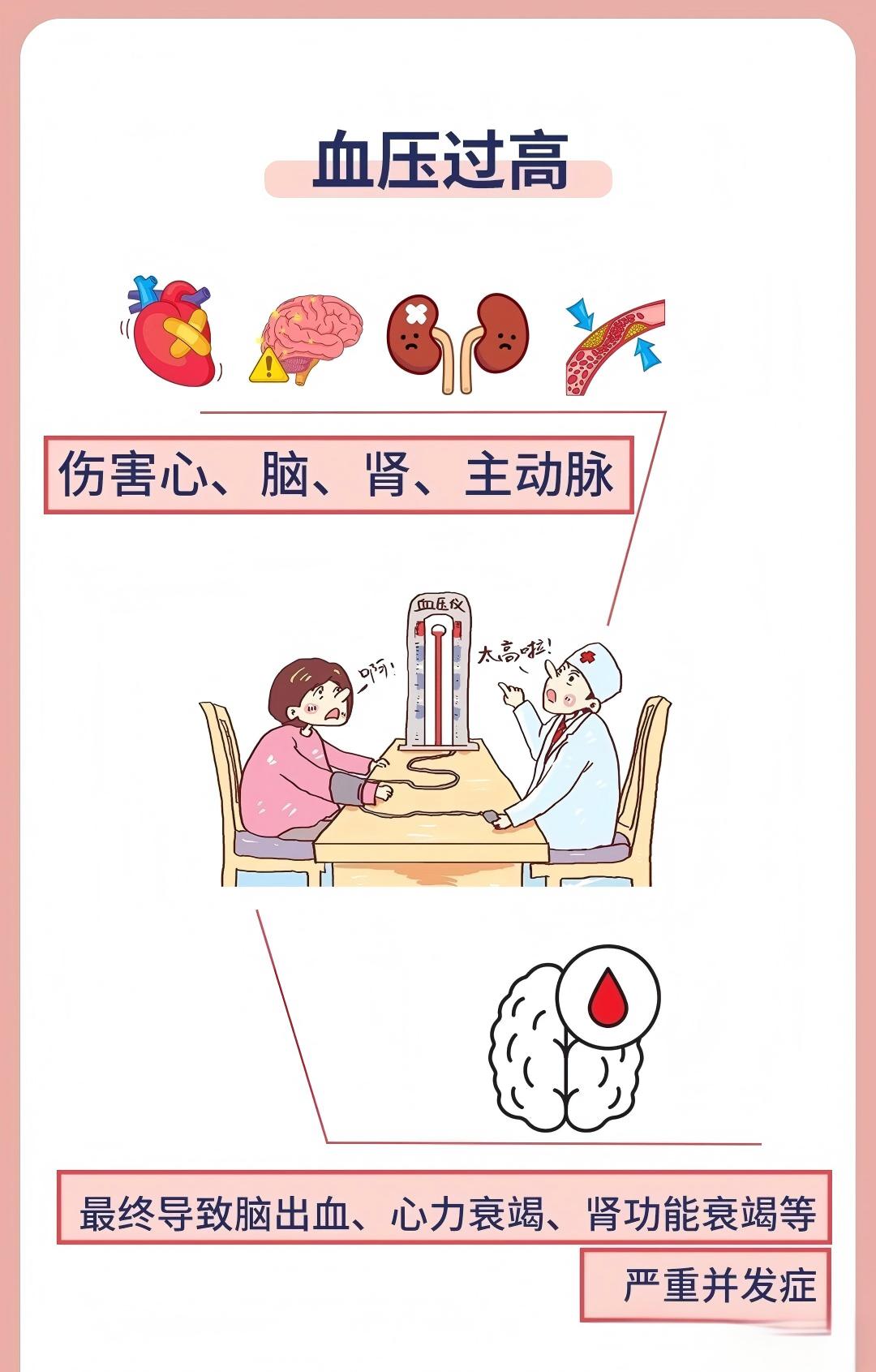 高血压的危害:1.血管损伤长期高血压会加速动脉硬化,使血管壁增厚、变硬,形成斑块,增加血栓风险。严重时可导致动脉瘤破裂,危及生命。